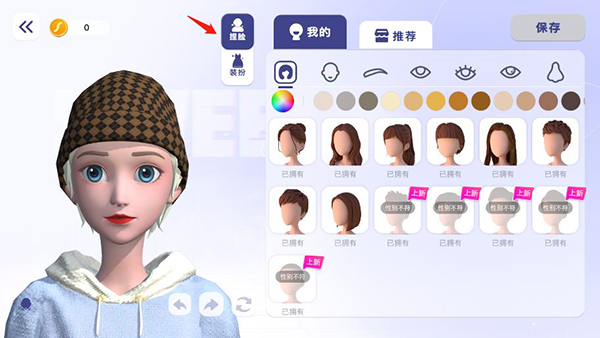 5、还有一种捏脸方法是自定义捏脸,点击左下角的捏脸。