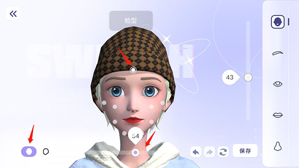 6、进入后首先点击正面,然后点击要更改的位置,之后可以在下面后旁边滑动调整参数。