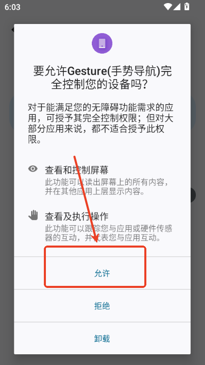 3、后面系统会再一次对用户进行询问,对于能满足您的无障碍功能需求的应用,可授予其完全控制权限;但对大部分应用来说,都不适合授予此权限。