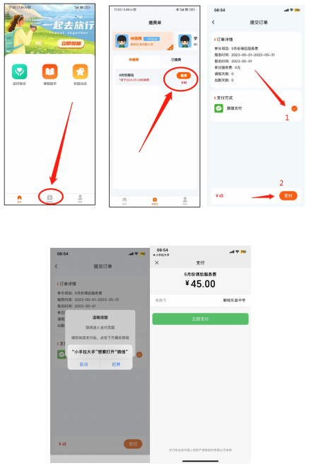 提示:系统在第二个月初根据报名和请假情况自动计算应缴服务费用,请及