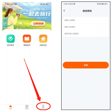 1、登录系统后点击下方 “我的”进入个人信息页面,点击“修改密码”。