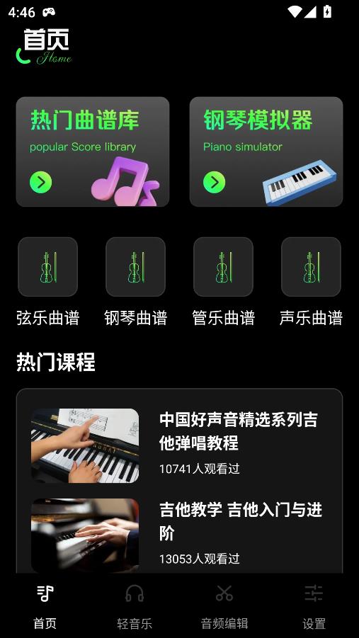 进入首页,可以看到不仅提供了丰富的曲谱和模拟器,还有海量热门课程。
