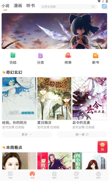 免费阅读与听书:提供大量免费小说资源,支持在线阅读及听书功能。