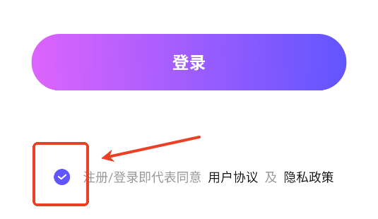 3、注意在登录之前,一定要去勾选这个圈,注册/登录即代表同意 用户协议及隐私政策。