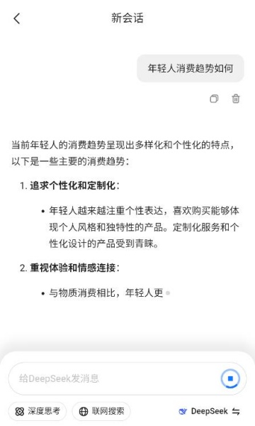 2、用户可以选择启用深度思考功能,让当贝AI进行多轮对话和复杂推理。