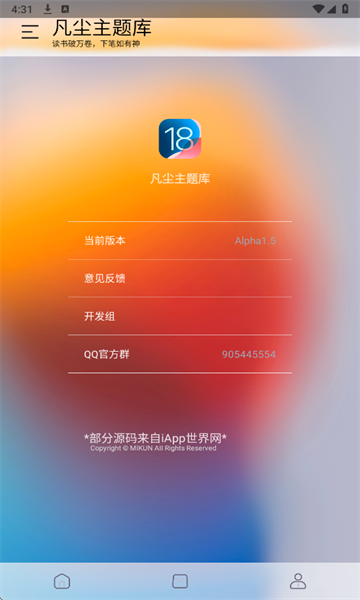 凡尘主题库是一款可以为大家提供仿苹果主题的手机软件,拥有几种不同风格的苹果主题供大家进行选择,选择下载主题包后就可以一键导入,让大家在安卓手机上也能够体验苹果主题,欢迎前来下载使用!