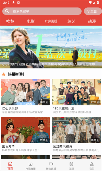 下载并打开软件,在软件主页面会推荐最近最新的热门剧集,可以根据自己喜好选择观看