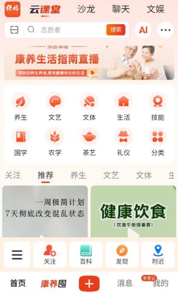 云课堂:在线课程覆盖多个领域,如文化艺术、健康管理、手工艺等,方便老年人随时随地学习新知识。