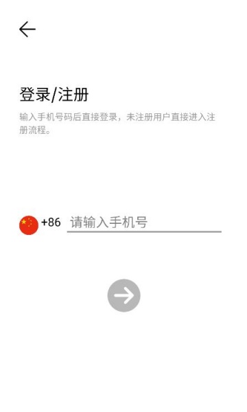 输入手机号,点击下一步。未注册用户直接进入注册流程。