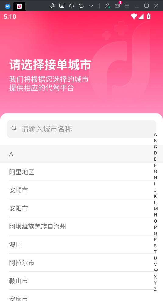 选择所在的城市,会根据选择推荐相应的代驾平台。