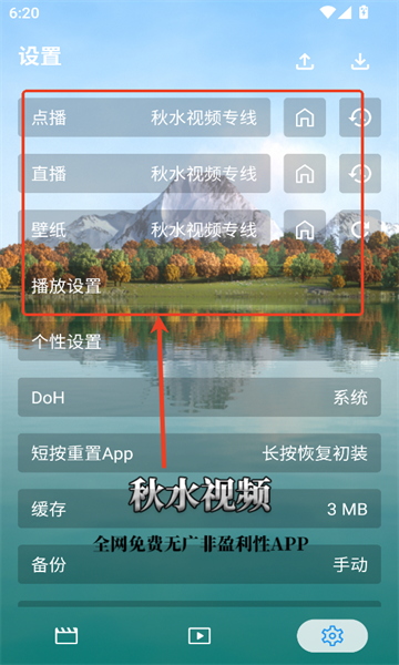 3、这里能自由的设置不同点播、直播以及壁纸之类的,给用户们带来更多个性化操作。