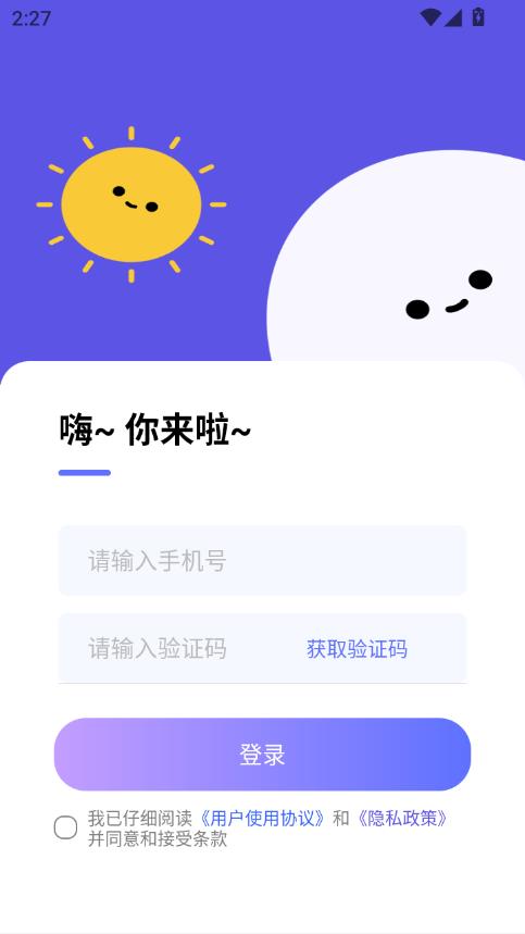 进入登录界面,填写手机号获取验证码,点击登录,未使用的手机号会自动注册。