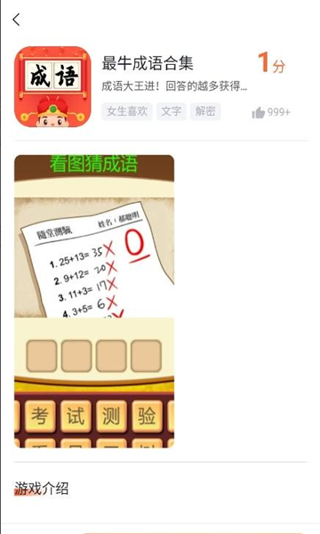 它对游戏的分类清晰明确,并且拥有非常精美的界面设计,让人感到非常舒适、简洁明了,包括益智、休闲、竞技、扑克、射击等等。