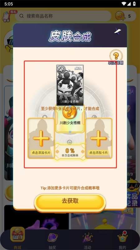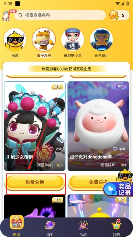 在抽奖页面,还可以使用金币来抽奖,有机会能获得更多稀有皮肤