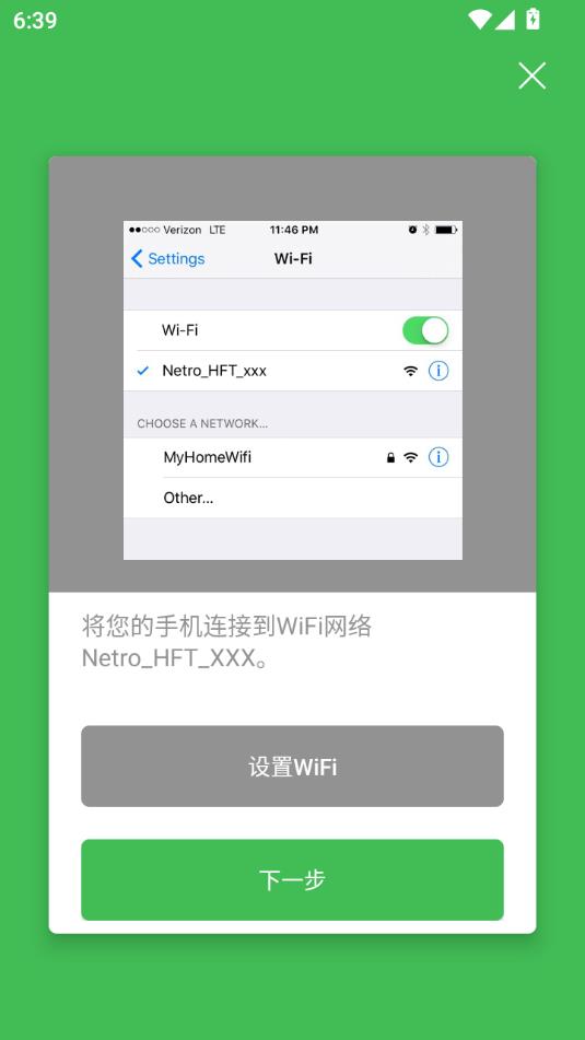 先点击设置wifi,确保设备和手机连接同一个网络,然后点击下一步,就会自动测试了。