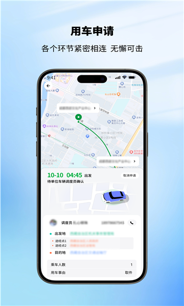 用车申请用户可通过App提交公务用车请求,填写具体需求(如时间、地点等)。