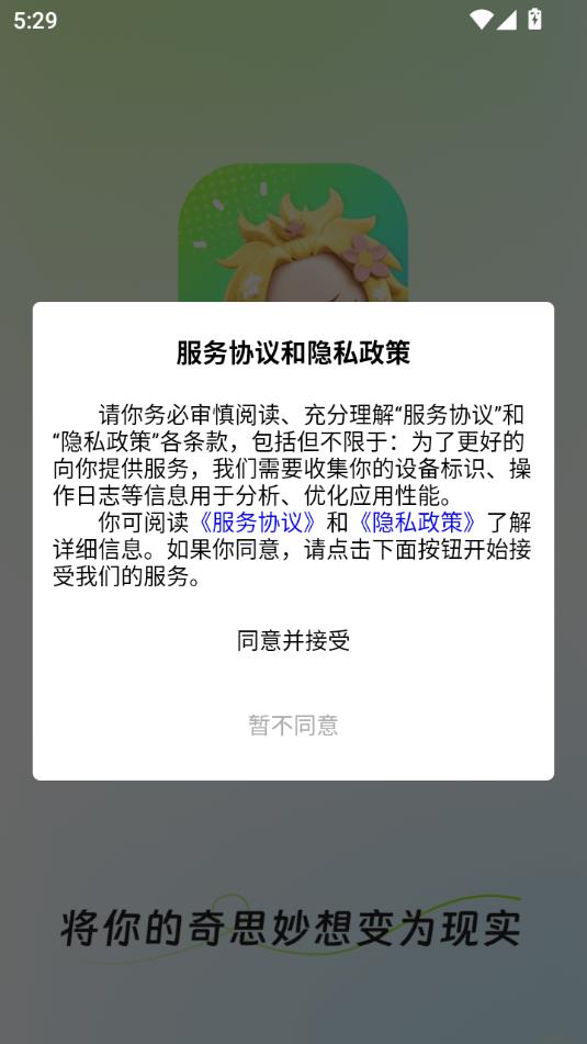 阅读服务协议和隐私政策,点击同意并接受。