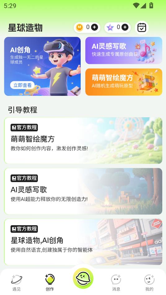萌创星球app是款多功能灵感创意社区,它不仅能够利用AI编写原创曲目,还能创建独特的星球成员,丰富的素材模版支持直接套用,降低创作门槛,让每位用户都能上手创作独属于自己的作品。