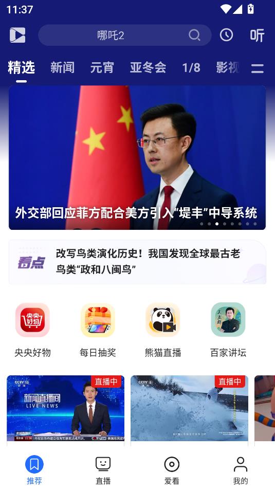 直播与回放:支持观看央视各频道的实时直播,并能回看过去一段时间内的节目。