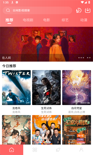 首页为用户推荐了很多的影视资源,涵盖了电视剧、电影以及综艺等。