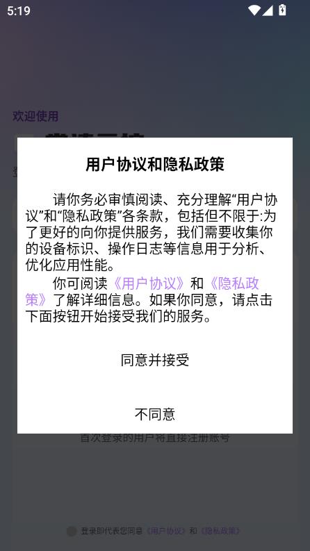 阅读服务协议和隐私政策,点击同意并接受。
