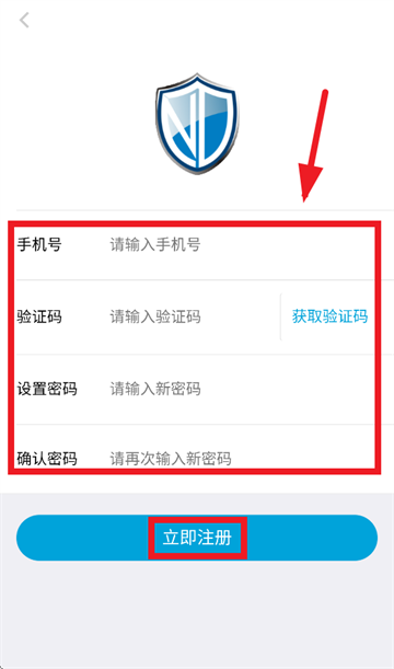 输入手机号,验证码,密码,点击立即注册即可