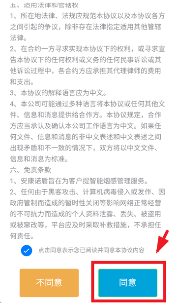 在用户协议及隐私声明提示界面阅读下滑至底部点击同意