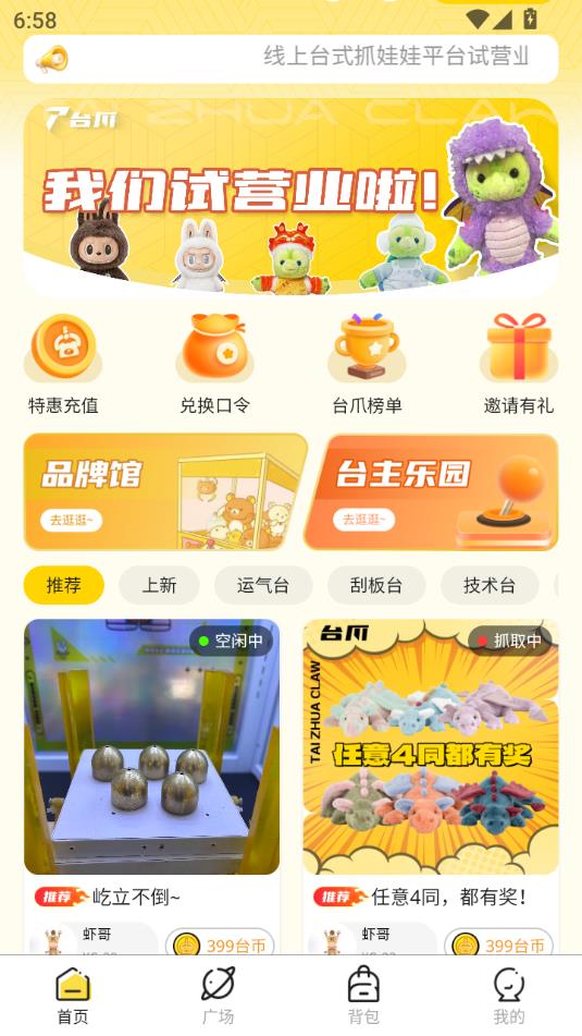 完成登录注册后返回首页选择想要抓的娃娃机,新人注册会送大量币。