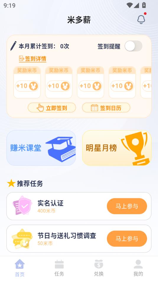 米多薪app是款可以碎片时间变现的娱乐平台,提供了丰富多样的任务以及赚米方式,任务难度较低,操作简单,无论是大学生还是宝妈等用户群体都能快速上手,超多礼品任意选择兑换,邀请好友或者升级还能翻倍领取哦!
