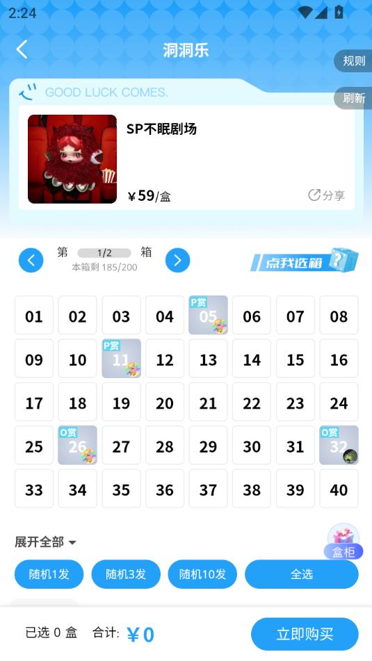 线上开盒专区:选择盲盒商品,支付后进入开盒界面,观看动画/直播揭晓结果。