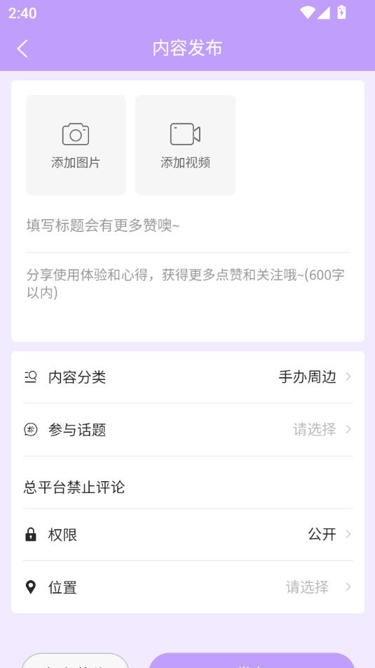 用户可以像发朋友圈/微博一样,上传图片、添加文字描述,发布自己的周边收藏、开箱体验、制作过程或相关心情感悟。