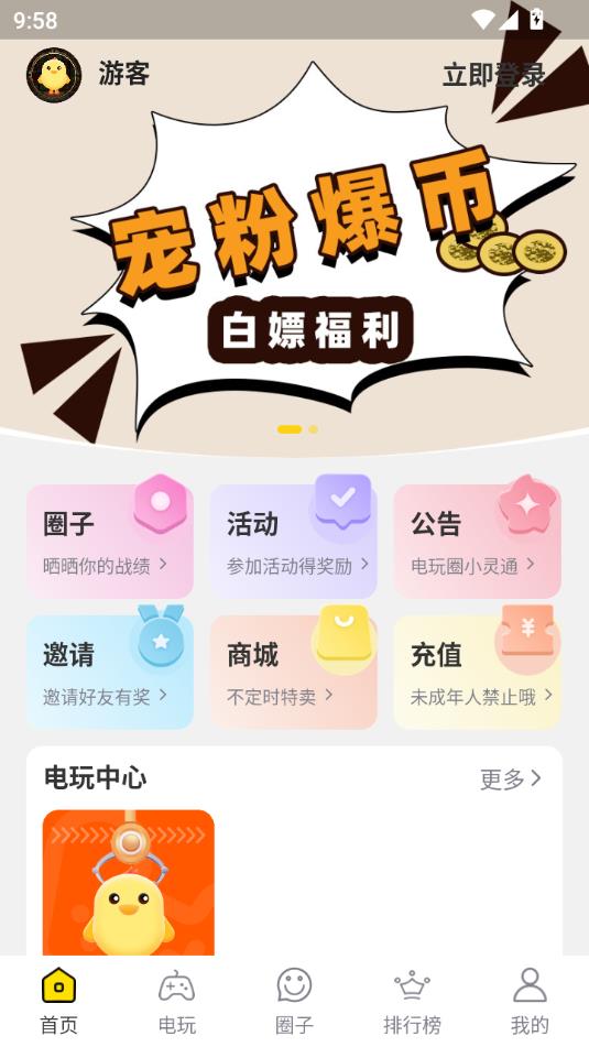 金币/时长系统:游戏通常需要消耗金币或游戏时长,用户可以通过签到、活动、充值等方式获取,注册送的100金币是初始福利。