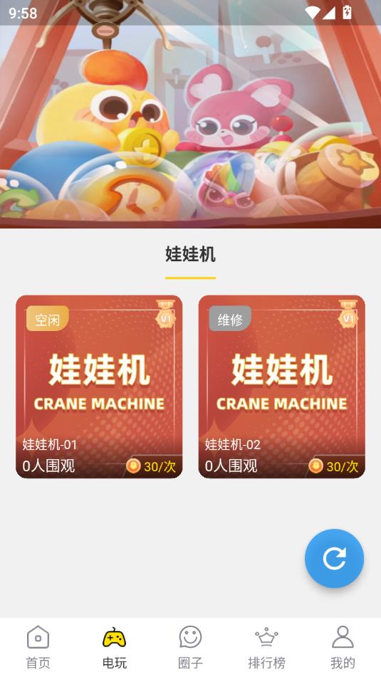线上电玩城抓娃娃应用,24小时营业,现在注册即送100~1000游乐币。