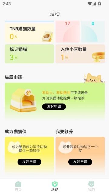 动态发布与追踪:为每只流浪猫建立“爱心档案”,支持持续更新其安全与健康状态。