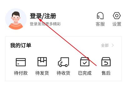 2、在个人中心点击登录/注册;