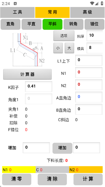 内置K因子相关计算逻辑,结合角度、补偿值、扣除量等关键参数,精准得出折弯距离与下料尺寸。