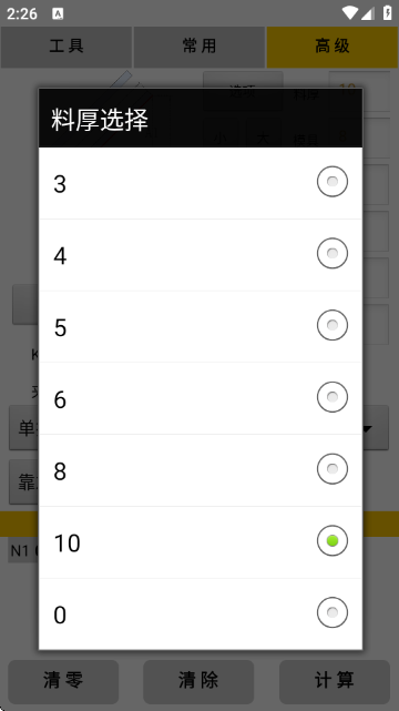 料厚选项提供 3、4、5、6、8、10 等常见规格可选,根据母排材料厚度选择对应数值;