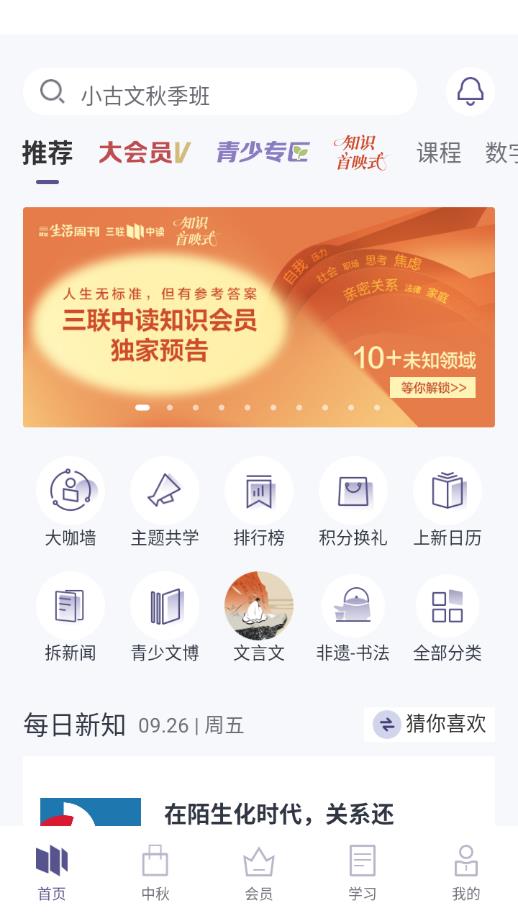 三联中读app是款联合图书、课程、杂志于一体的周刊阅读软件,精选多达500门人文课,进行了详细分类,用户可以根据多样化标签选择喜欢的内容观看,通过阅读和完成任务可以获取积分,支持在积分商城兑换各种各样的商品。