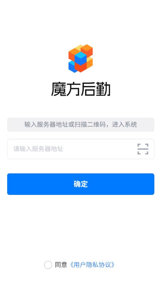 输入服务器地址或扫描二维码进入系统。