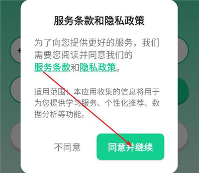 1、下载安装考考鸭app,打开之后点击同意并继续;