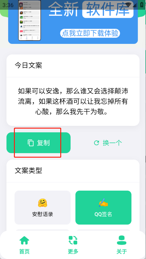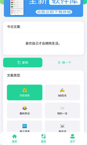 聚合文案库软件下载链接分享给大家!这是一款免费全新的手机文案生成软件,无需登录注册,轻松即可上手生成不同风格的文案内容,拥有多个类别,让大家可以轻松上手使用操作,功能十分全面,有需要就快来下载体验吧!