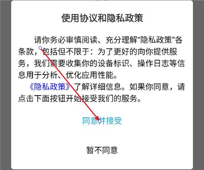 1、下载逸翔出行app,打开之后点击同意并接受;