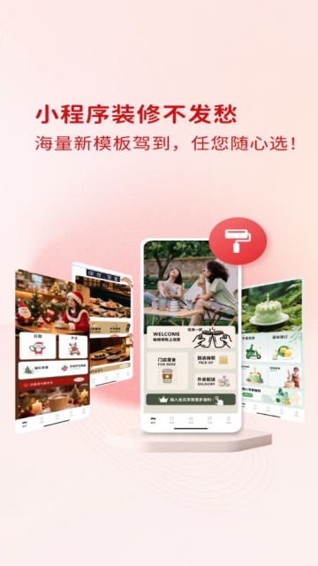 提供模板化的小程序搭建工具,商户可自行设计线上店铺的页面、商品展示、活动海报等。