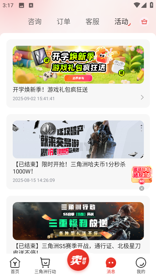 6、最后点击下方导航栏的“消息”,还可以随时查看最新的游戏活动。