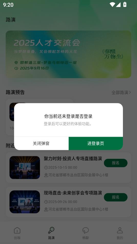 输入信息点击登录,新用户登录后会自动创建账号,然后返回路演页面再次点击报名即可。