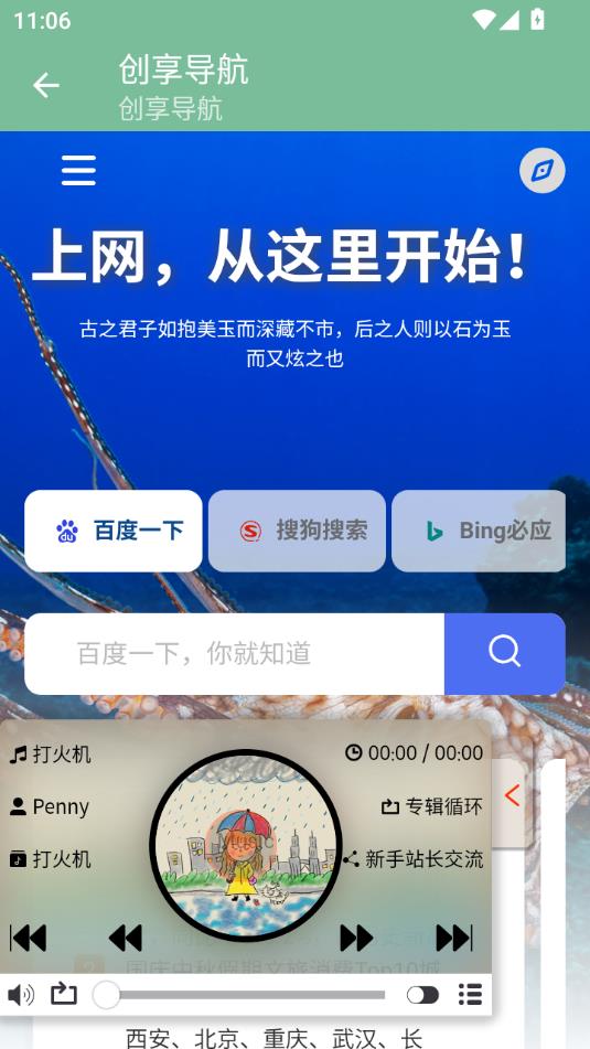 1、智能资源聚合:整合浏览器、网盘、影视、小说、音乐等优质入口