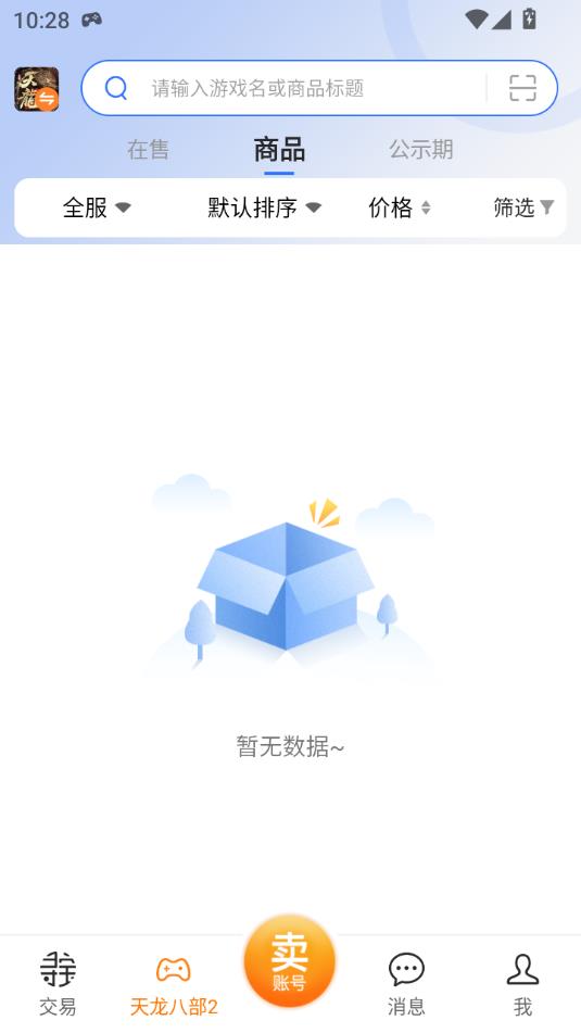 打开寻宝网交易app,在交易页面提供了许多游戏可以选择,也可以以点击天龙八部。