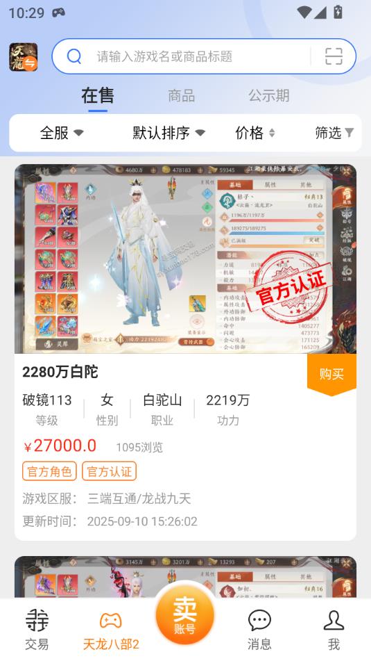 3、支持在线发布装备信息,还可以自定义金额来进行售卖。