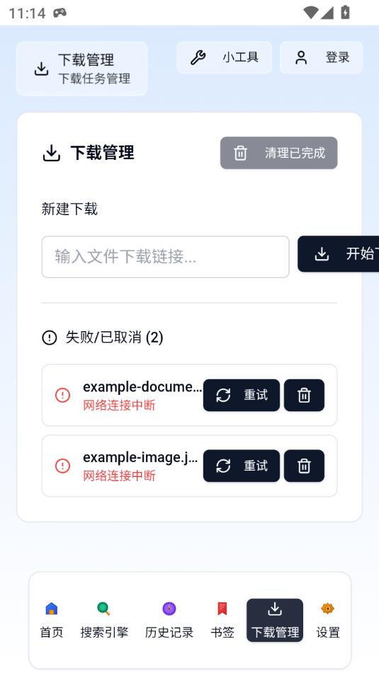 资源管理功能:书签管理支持一键收藏网页并分类归档,方便快速回访常用站点。