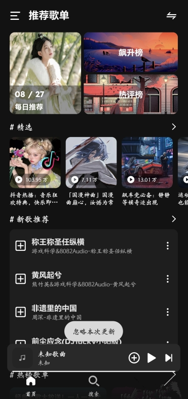 进入首页,这里提供了丰富的歌曲选择。